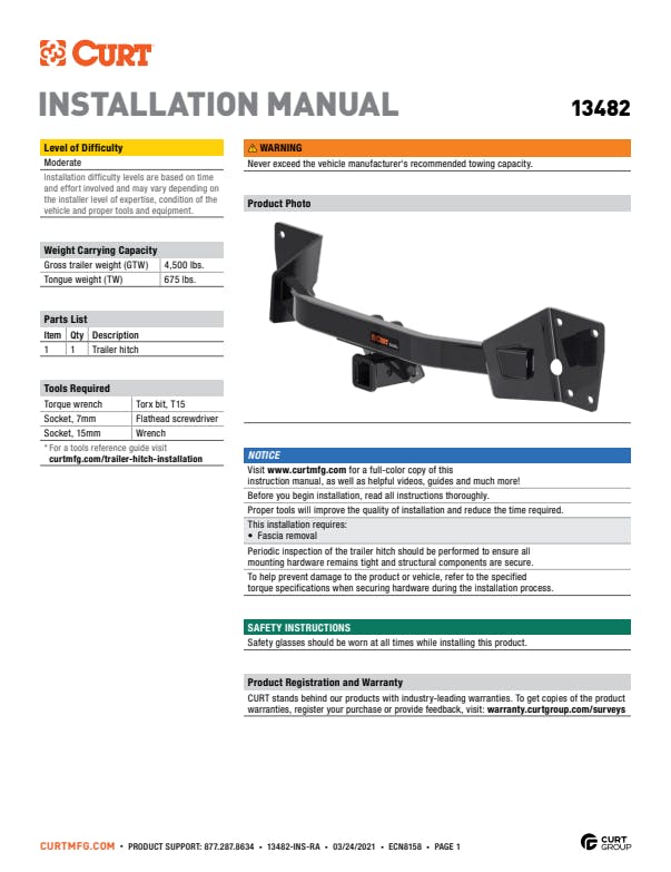 Whatever your task at hand -- whether it's launching that boat before daybreak, setting up your camper before the rush or getting a final load to the dump before close -- CURT class 3 trailer hitches offer the strength needed for serious towing. They make it easy to hitch up and Bring It, offering a vehicle-specific fit and the weight capacity to handle a variety of trailers. Custom class 3 hitches are the most common type of receiver hitch for pickup trucks and SUVs. Because of their weight range, they are also found on full-size cars, crossovers and minivans. Each custom-fit class 3 hitch package is made for vehicle-specific mounting. This particular kit fits certain years of the Cadillac XT6 (see application info to verify vehicle compatibility). It provides a weight carrying capacity of 4,500 lbs. GTW and 675 lbs. TW. CURT class 3 trailer hitches are typically used to attach and haul utility trailers, boat trailers, campers, snowmobile or ATV haulers and more (NOTE: Never exceed the lowest-rated towing component). Each class 3 hitch has a 2" receiver tube and is tested in accordance with SAE J684 for safety. To ensure that CURT class 3 receiver hitches have what it takes for serious trailering, they are designed using a hands-on approach and are constructed with rugged, high-strength steel and precise welding. We also protect our class 3 hitches in a co-cured finish of liquid A-coat and black powder coat for superior resistance to rust, chipping and UV damage.