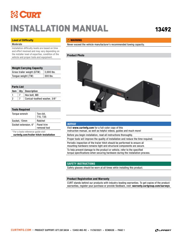 Whatever your task at hand -- whether it's launching that boat before daybreak, setting up your camper before the rush or getting a final load to the dump before close -- CURT class 3 trailer hitches offer the strength needed for serious towing. They make it easy to hitch up and Bring It, offering a vehicle-specific fit and the weight capacity to handle a variety of trailers. Custom class 3 hitches are the most common type of receiver hitch for pickup trucks and SUVs. Because of their weight range, they are also found on full-size cars, crossovers and minivans. Each custom-fit class 3 hitch package is made for vehicle-specific mounting. This particular kit fits certain years of the Volkswagen ID.4, Audi Q4 e-tron and Q4 e-tron Sportback (see application info to verify vehicle compatibility). It provides a weight carrying capacity of 3,000 lbs. GTW and 300 lbs. TW. CURT class 3 trailer hitches are typically used to attach and haul utility trailers, boat trailers, campers, snowmobile or ATV haulers and more (NOTE: Never exceed the lowest-rated towing component). Each class 3 hitch has a 2" receiver tube and is tested in accordance with SAE J684 for safety. To ensure that CURT class 3 receiver hitches have what it takes for serious trailering, they are designed using a hands-on approach and are constructed with rugged, high-strength steel and precise welding. We also protect our class 3 hitches in a co-cured finish of liquid A-coat and black powder coat for superior resistance to rust, chipping and UV damage.