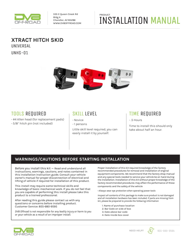 The DV8 Xtract Hitch Skid protects your rig while adding a strong recovery point. Designed for any standard 2” hitch receiver with a ⅝” pin, it’s CNC-machined from 6061-T6 billet aluminum for maximum strength. A replaceable Delrin skid pad reduces friction on rocks, while 1” thick D-ring mounts support a 13,000lb working load. Available in raw, black, or red finishes, with optional billet skid pad upgrades and replacement pads, it delivers trail-ready protection and versatility.
