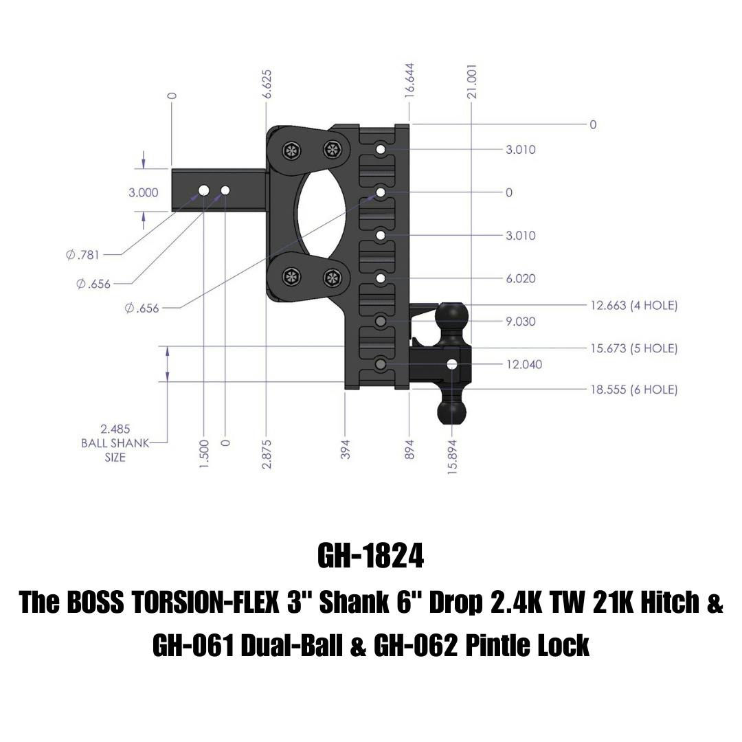 The BOSS TORSION-FLEX 3" Shank 6" Drop 2.4K TW 21K Hitch & GH-061 Dual-Ball & GH-062 Pintle Lock