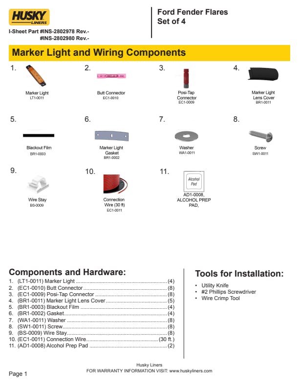 - Installing Husky RVL Fender Flares is a snap. They're easy to mount in minutes with all necessary hardware included (varies by vehicle make and model).
