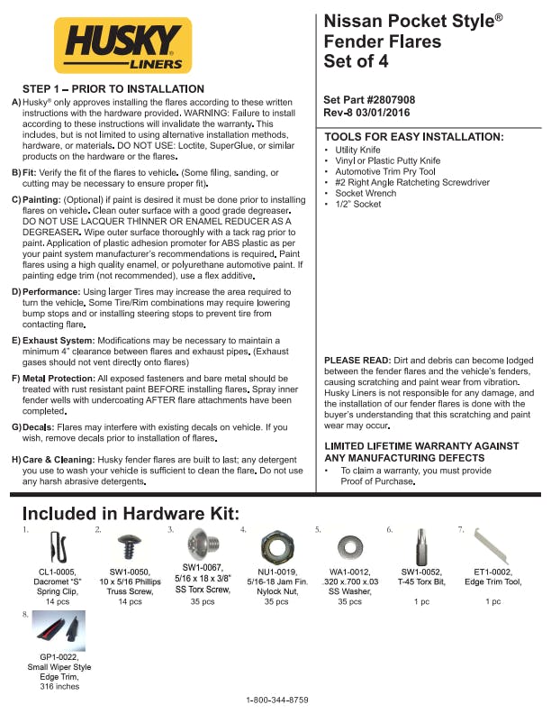 - Pocket Style fender flares are covered by Husky Liners Limited Lifetime Warranty. Featuring Husky's legendary durability, so they're built to last. Proudly made in the USA with global materials.