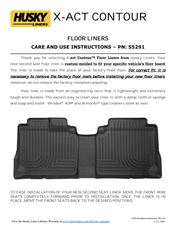 Nothing fits your vehicle better or protects longer than Husky X-act Contour?. These liners combine laser-scanned, exact fit with a no-slip, DuraGrip? surface and a softer feel. Plus, the rock-solid stability delivered by your vehicle?s factory retention posts, and our StayPut? Nibs for a no-slip, no-slide, surface with absolutely zero compromise in protection. They?re built to stand up to whatever you?re laying down? including chemicals like battery acid and oil, with our FormFit Edge? to keep whatever spills contained for easy cleanup. Available in black. Built for a lifetime of rugged abuse, warrantees the same.