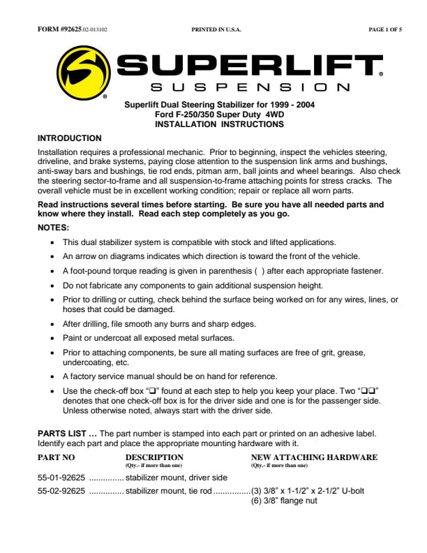 Established in 1975, Superlift remains a pioneer in the industry, and is one of the few suspension companies operated by true truck and off-road enthusiasts. We are passionate about trucks, wheeling and an outdoor lifestyle that go hand-in-hand. We can talk the talk because we walk the walk.This question.... ''What's best for the customer?''... is always at the top of our list in everything we do, from product planning and design to customer service. This simple guiding principal has served us well for decades, and will continue to guide us into the future.We are proud to provide the truck, Jeep and SUV owner products that perform better than advertised. We understand that most people spend the majority of their windshield time on-road, and our designs reflect this. You will be 100% satisfied with our products on-road or off - we guarantee it! Determining what product is right for your vehicle and lifestyle can be a complicated task, especially with so many companies and options to choose from. We urge you to carefully research your purchase. Most lift kits represent a considerable investment, and you will literally live with your choice for years. Talk to fellow off-roaders, and your local automotive specialty shop before making a purchase. We love to talk shop, and we encourage you to give our tech staff a call. Bottom line... if you do your homework, you'll discover that we've done ours.