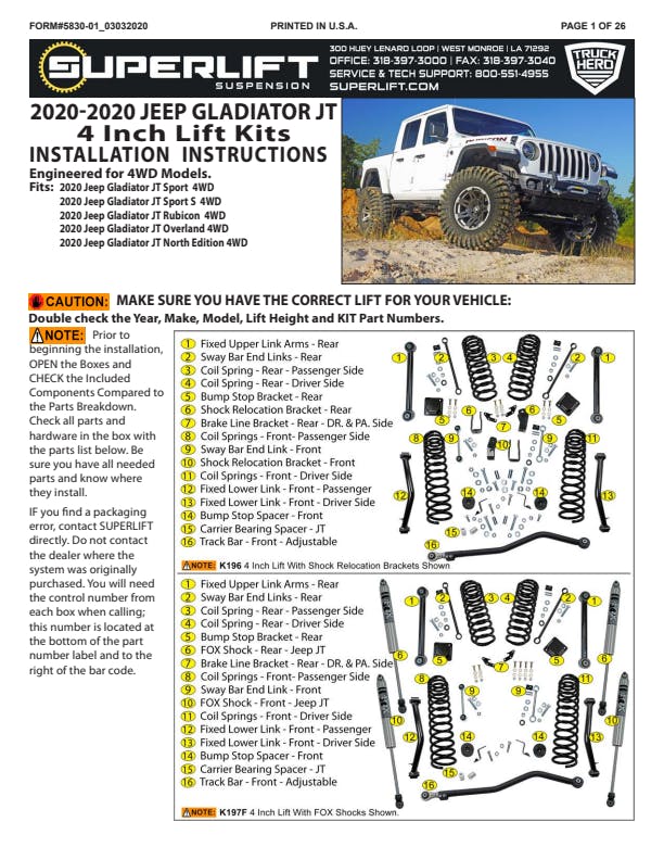 Established in 1975, Superlift remains a pioneer in the industry, and is one of the few suspension companies operated by true truck and off-road enthusiasts. We are passionate about trucks, wheeling and an outdoor lifestyle that go hand-in-hand. We can talk the talk because we walk the walk.This question.... ''What's best for the customer?''... is always at the top of our list in everything we do, from product planning and design to customer service. This simple guiding principal has served us well for decades, and will continue to guide us into the future.We are proud to provide the truck, Jeep and SUV owner products that perform better than advertised. We understand that most people spend the majority of their windshield time on-road, and our designs reflect this. You will be 100% satisfied with our products on-road or off - we guarantee it! Determining what product is right for your vehicle and lifestyle can be a complicated task, especially with so many companies and options to choose from. We urge you to carefully research your purchase. Most lift kits represent a considerable investment, and you will literally live with your choice for years. Talk to fellow off-roaders, and your local automotive specialty shop before making a purchase. We love to talk shop, and we encourage you to give our tech staff a call. Bottom line... if you do your homework, you'll discover that we've done ours.