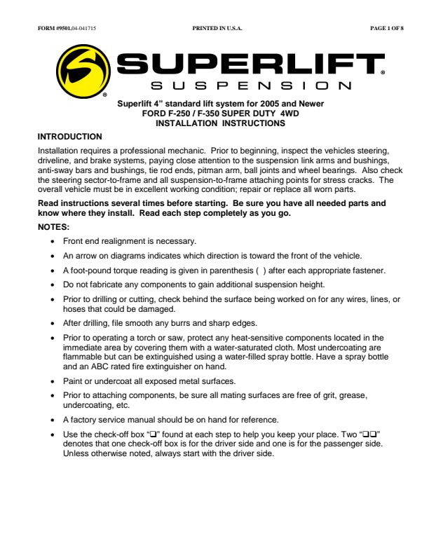 Established in 1975, Superlift remains a pioneer in the industry, and is one of the few suspension companies operated by true truck and off-road enthusiasts. We are passionate about trucks, wheeling and an outdoor lifestyle that go hand-in-hand. We can talk the talk because we walk the walk.This question.... ''What's best for the customer?''... is always at the top of our list in everything we do, from product planning and design to customer service. This simple guiding principal has served us well for decades, and will continue to guide us into the future.We are proud to provide the truck, Jeep and SUV owner products that perform better than advertised. We understand that most people spend the majority of their windshield time on-road, and our designs reflect this. You will be 100% satisfied with our products on-road or off - we guarantee it! Determining what product is right for your vehicle and lifestyle can be a complicated task, especially with so many companies and options to choose from. We urge you to carefully research your purchase. Most lift kits represent a considerable investment, and you will literally live with your choice for years. Talk to fellow off-roaders, and your local automotive specialty shop before making a purchase. We love to talk shop, and we encourage you to give our tech staff a call. Bottom line... if you do your homework, you'll discover that we've done ours.
